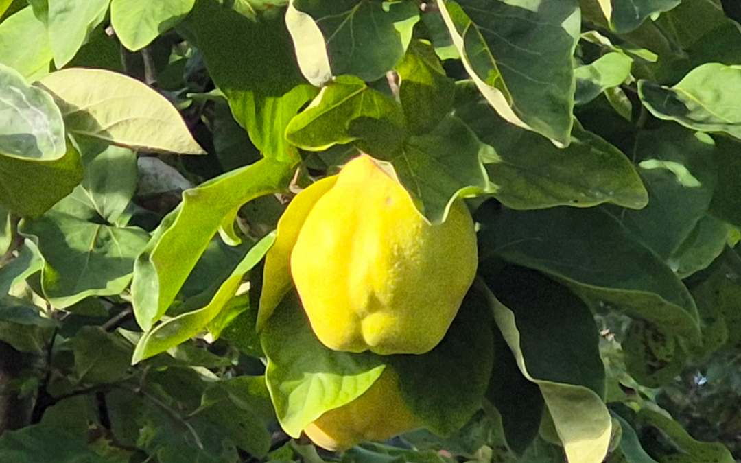 Im Mai öffnen sich die üppigen, weiß bis rosé getönten Blüten – größer und auffälliger als bei Apfel oder Birne. Sie sind nur für wenige Wochen da, doch ihr Anblick bleibt unvergesslich. Danach wachsen langsam die Früchte heran, die sich bis Oktober in ein leuchtendes Gelb verwandeln. Mit ihrem feinen Flaum und dem intensiven Duft wirken sie fast wie Märchenfrüchte, die mehr versprechen als nur Genuss.